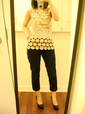 Although I initially wanted the dress version of this top (see below), I changed my mind and went for the top instead for more versatility. I've got a bad habit of buying cocktail-y dresses, which usually prompts an annoying but predictable response from the salesperson: "Going to an event?" I then resist the urge to roll my eyes and simply say, quite lamely, "Uhhhh, no." I finally realized that I need to buy more "day" items, as my closet is shockingly "night"-dominate. Does anybody else have this peculiar problem, or is it just me?